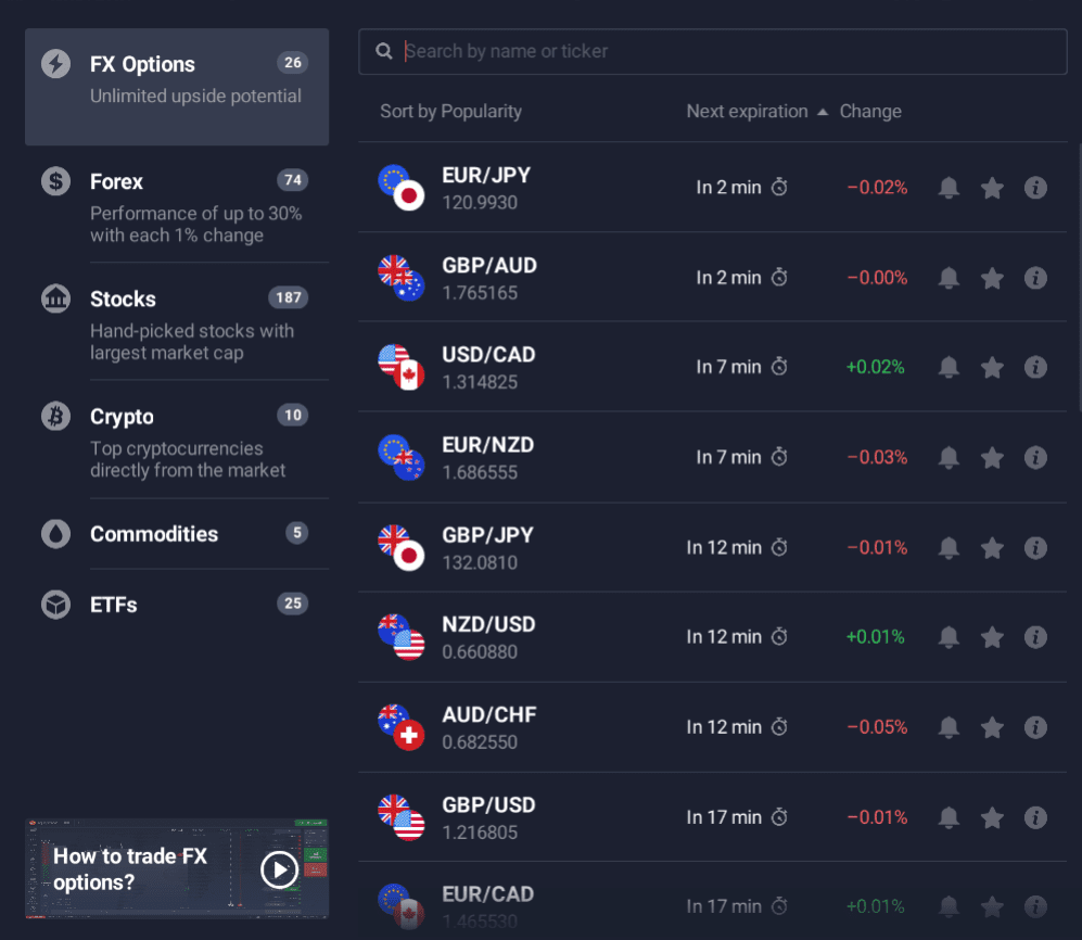 - A disponibilidade de ativos é limitada para traders na Exnova. Em comparação com outros CFDs e corretores de opções binárias, os traders podem experimentar uma seleção limitada.
