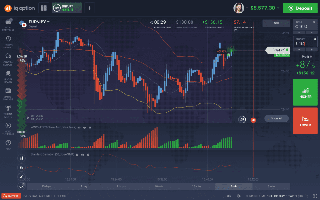 IQ Option é uma das melhores plataformas de negociação online. A plataforma é de fácil utilização e fácil de usar. Além disso, os traders profissionais e avançados são bem-vindos. As maiores vantagens deste corretor são um pequeno depósito mínimo, uma plataforma personalizável e boas condições comerciais. Em comparação com outros corretores de opções binárias oferece os retornos mais elevados de até 95%.