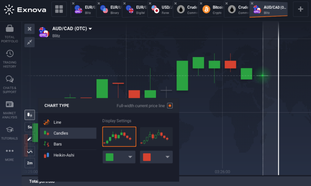 - Os traders podem abrir mais de um gráfico de negociação ao mesmo tempo. Ele permite que os traders da Exnova fechem mais de um negócio ao mesmo tempo.