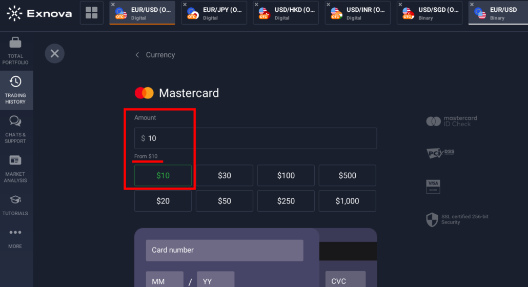 - Com um depósito mínimo de US$ 10 e sem taxas de retirada, a QUOTEX é uma plataforma de negociação acessível para traders de todos os níveis.