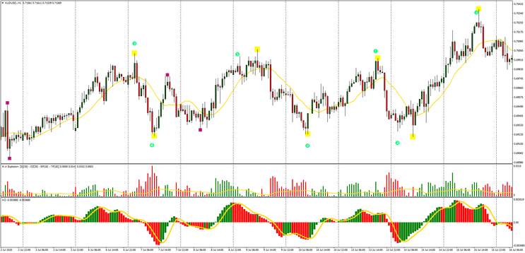 Quando o número de uma onda aparece, observe a correspondência com o indicador 3 ZZ Level Semafor para ter uma ideia do movimento. Se coincidir com quadrados amarelos, o movimento pode ser maior; se coincidir com quadrados roxos, o movimento pode ser menor.