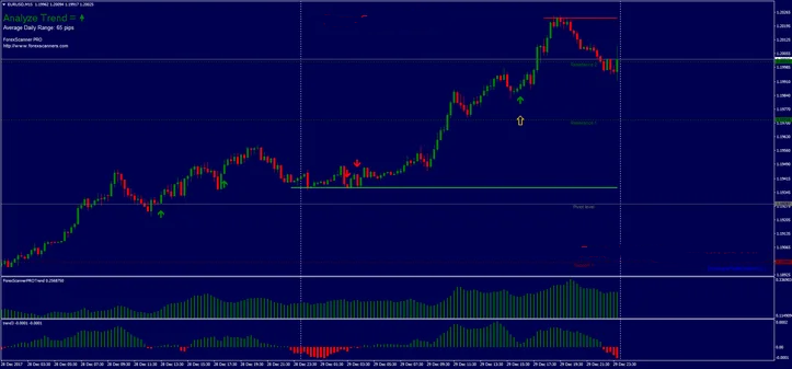 - Forex Scanners Pro deve mostrar uma seta verde indicando uma tendência de alta.