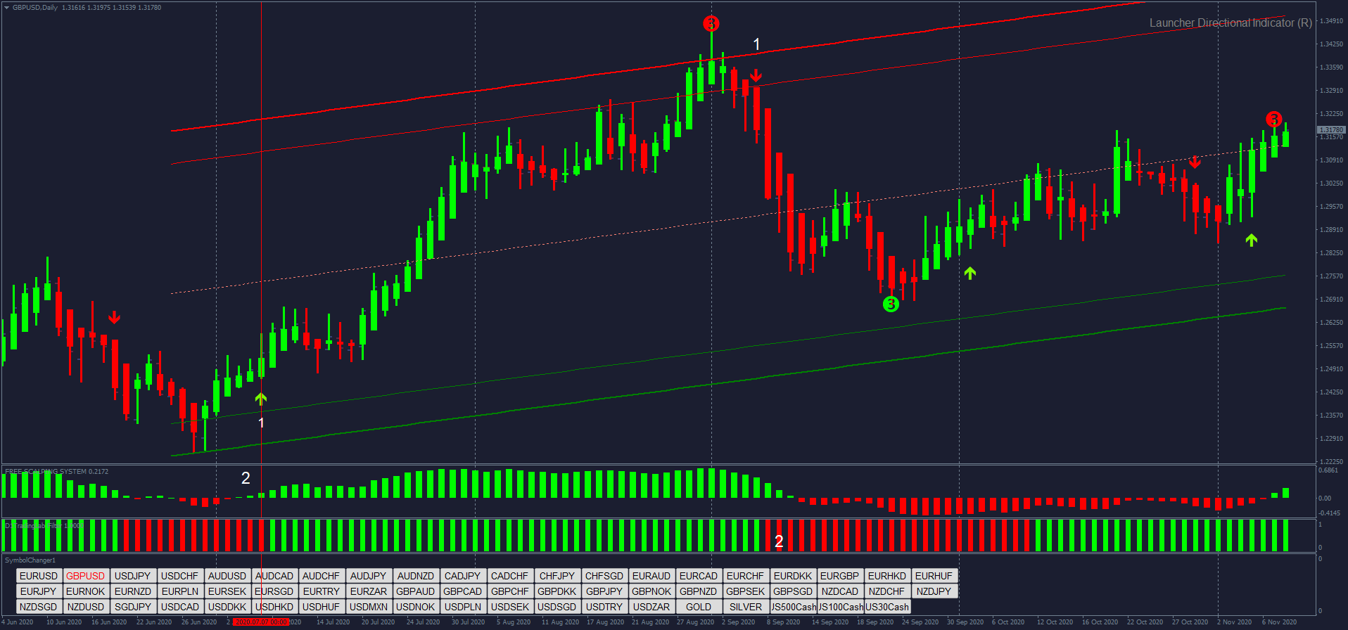 - O Indicador de Scalping mostra uma barra verde.