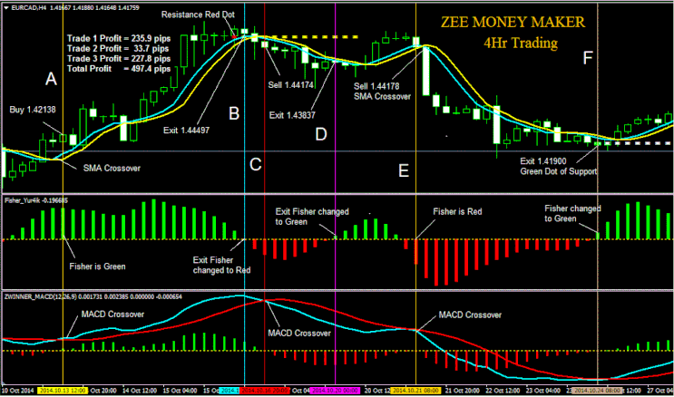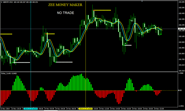 - Entrada: Às 8:00 da manhã, a vela está abaixo do nível de resistência, o Fisher Indicator está vermelho, e a Aqua SMA está abaixo da Yellow SMA.