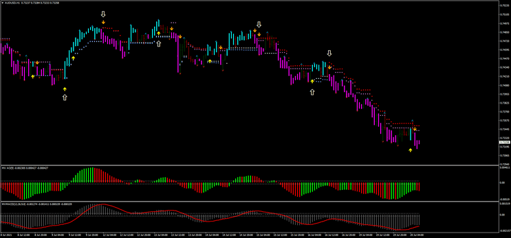 - Seta de Compra/Venda: Indica pontos de entrada potenciais com base em condições específicas do mercado.