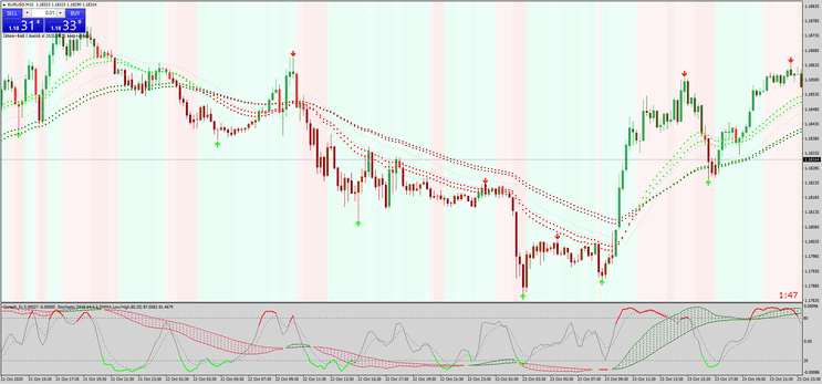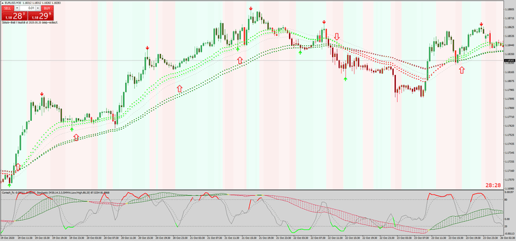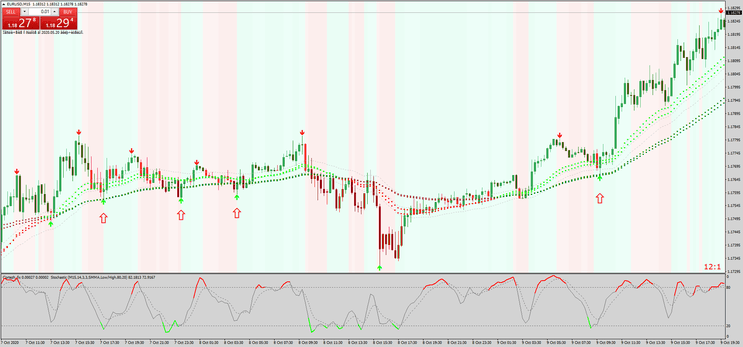 Este é um indicador estocástico colorido com um filtro adicional (Cortez indicator) que confirma movimentos de mercado, ajudando a evitar sinais falsos.