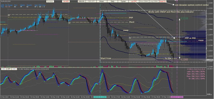 • Trabalha com o sistema de trading dinâmico v2v – com Pivots Fibs plus e indicador v2v VWAP