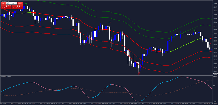 - Aplicação: As setas de compra e venda do Trend Navigator ajudam a confirmar os sinais dados por outros indicadores, garantindo que as operações sejam abertas na direção da tendência dominante.